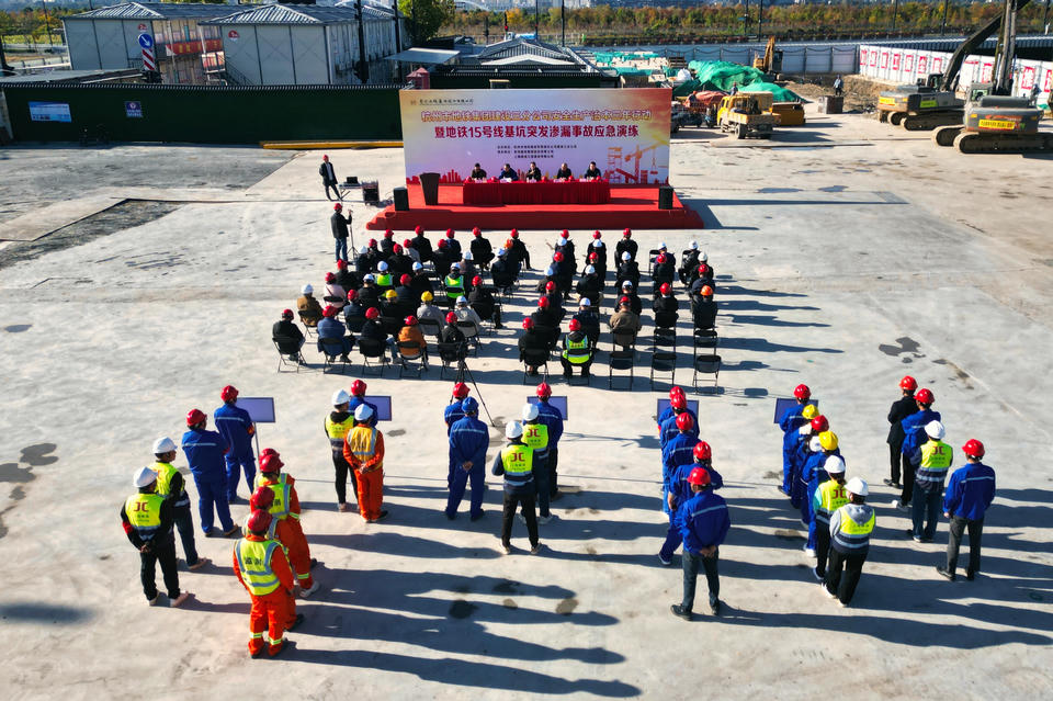 2024年11月29日,宏潤建設杭州市城市軌道交通15號線一期施工SG15-8標段盾構(gòu)轉(zhuǎn)換井工區(qū)現(xiàn)場,成功舉辦了“安全生產(chǎn)治本攻堅三年行動暨基坑突發(fā)滲漏水應急演練”。