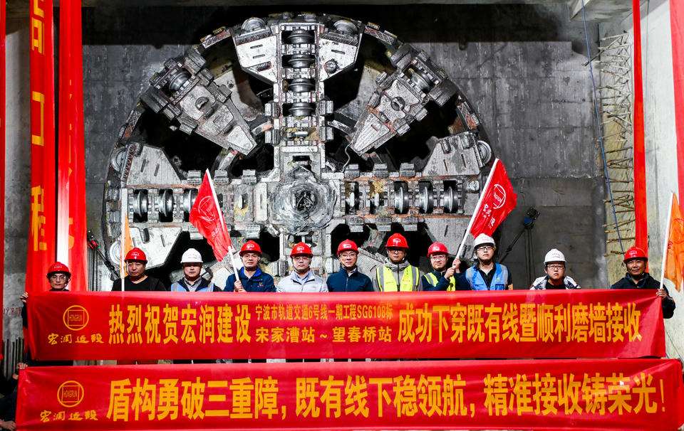 2024年12月6日,宏潤寧波市軌道交通SG6108標宋家漕站-望春橋站區(qū)間右線盾構(gòu)機連續(xù)磨穿三道鋼筋混凝土地連墻,并下穿既有運營線地鐵車站后順利接收。
