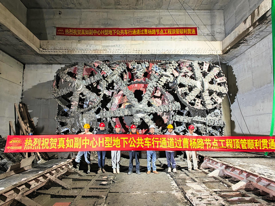 宏潤上?!昂<{號”大斷面類矩形頂管雙線貫通