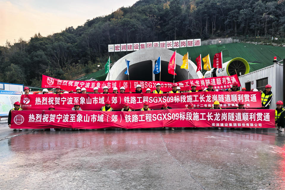 2024年12月18日,歷經(jīng)579個日夜的不懈努力,宏潤建設承建寧波至象山市域(郊)鐵路工程SGXS09標段長龍崗隧道順利貫通,標志著該標段項目取得了重大進展。